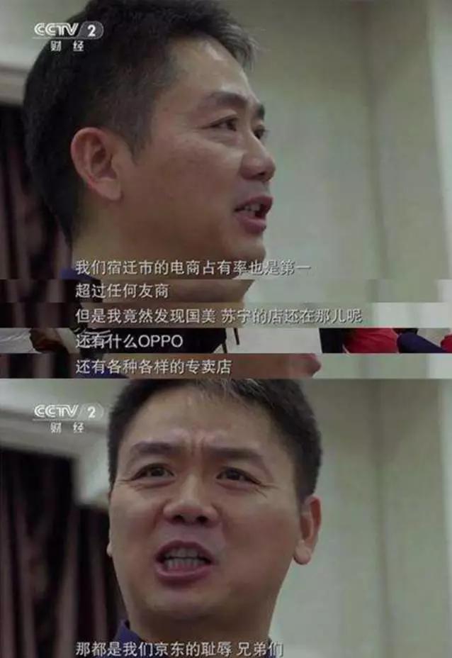 “我们宿迁市的电商占有率也是第一,超过任何友商,但是我竟然发现国美、苏宁的店还在那儿呢,还有什么OPPO,还有各种各样的专卖店,那都是我们京东的耻辱!”